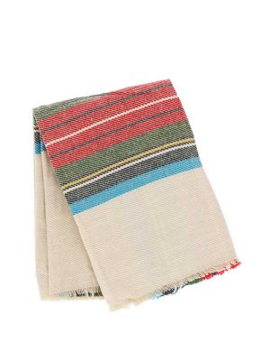 The distinctive hounds-tooth pattern is accompanied by varying striped colors. Change up your wardrobe with this iconic printed scarf, with small fringe outlining the edges. Cut in a square shape, this simple yet bold accessory can be wrapped as a blanket scarf, or a shawl for extra comfort and style. Composed of a soft acrylic yarn, mimicking the feel of an expensive fabric.