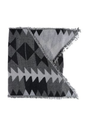 Available in a stylish fog color, this scarf is perfect for the fall and winter seasons. Features fringe along the edges, this oblong scarf contains graphic prints throughout.