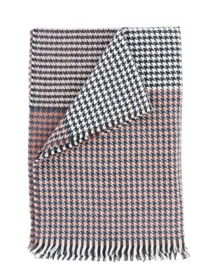 Houndstooth covers the body of this large oblong scarf, perfect for pairing with many looks this season! Add some flair and pattern to everyday outfits by layering this accessory.