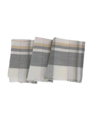 $10.50Style your look with this grey fringed oblong scarf! Oblong scarves are fun to accessorize with, because they can be wrapped multiple ways! Comprised of charcoal, grey, white and beige stripes. Made of a mix of materials that create a lightweight and breathable fabric, although can offer warmth if double-wrapped.