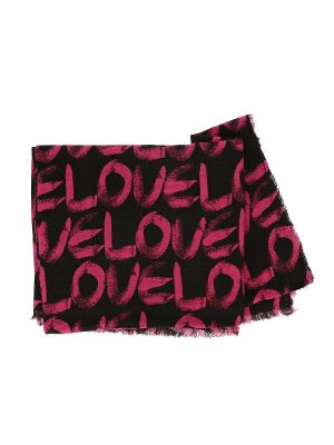 Featuring a LOVE print lettering, you can choose from cream or hot pink lettering to best fit your wardrobe and style. The fringed edges add a touch of uniqueness to this soft and warm scarf.